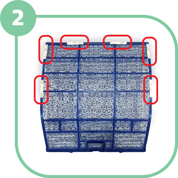 80% ของอากาศจะถูกดูดเข้าทางช่องอากาศด้านบนของเครื่องปรับอากาศ การติดแผ่นกรองเฉพาะด้านบนจึงมีประสิทธิภาพเพียงพอสำหรับการกรองอากาศที่ไหลเข้าเครื่องปรับอากาศ