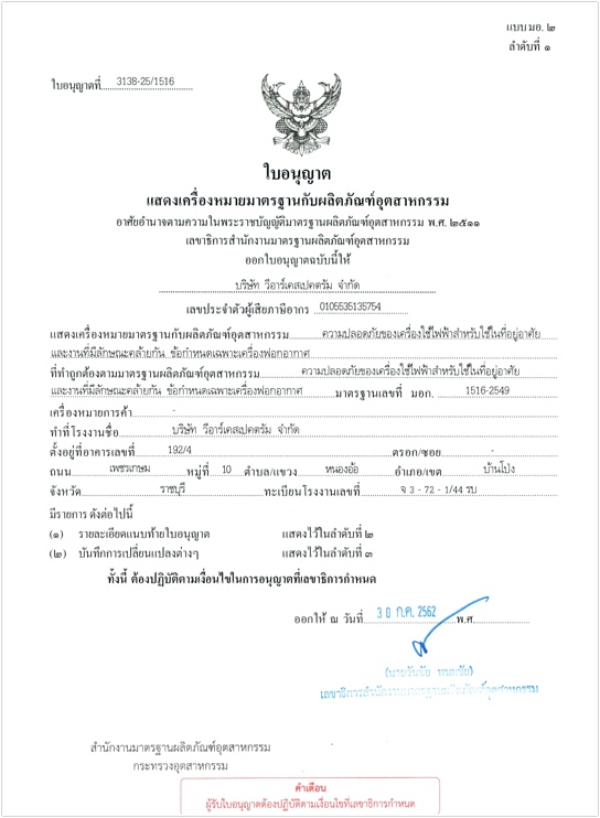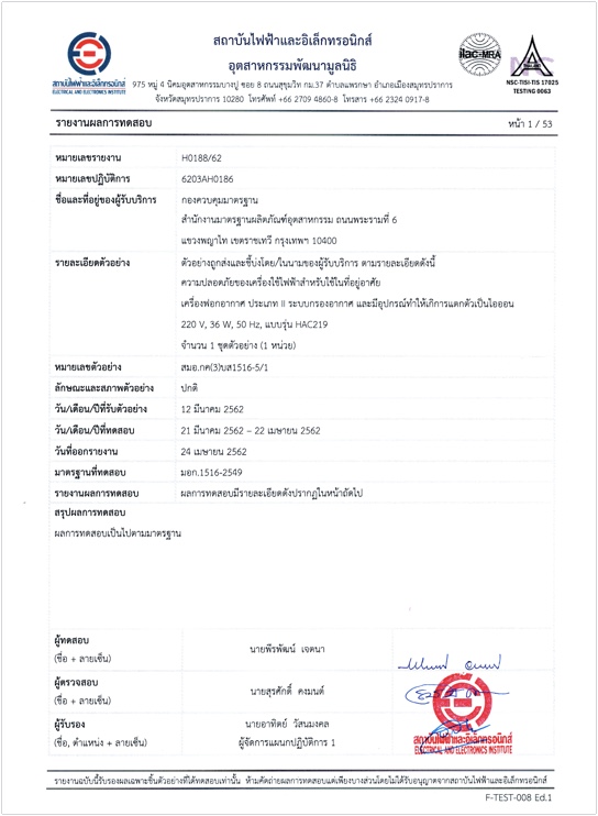 ผลการทดสอบ มอก. 1516-2549-1