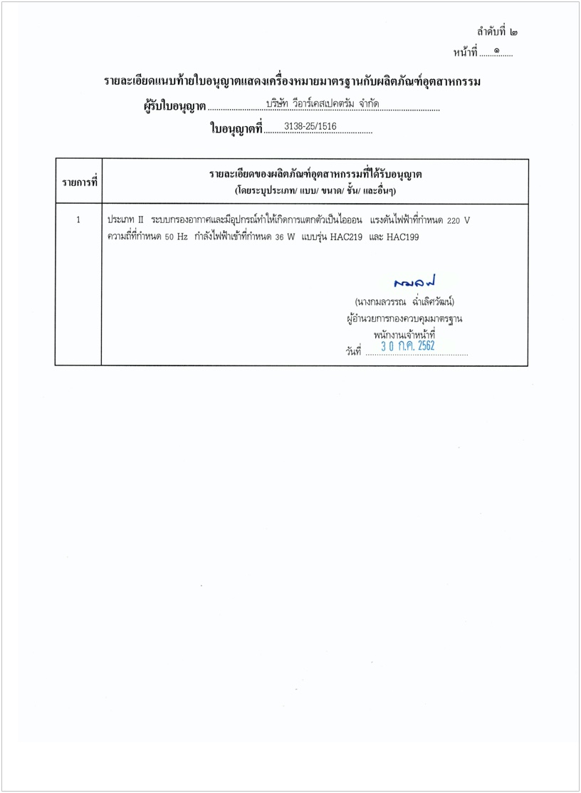 เครื่องกรองอากาศ HAC219