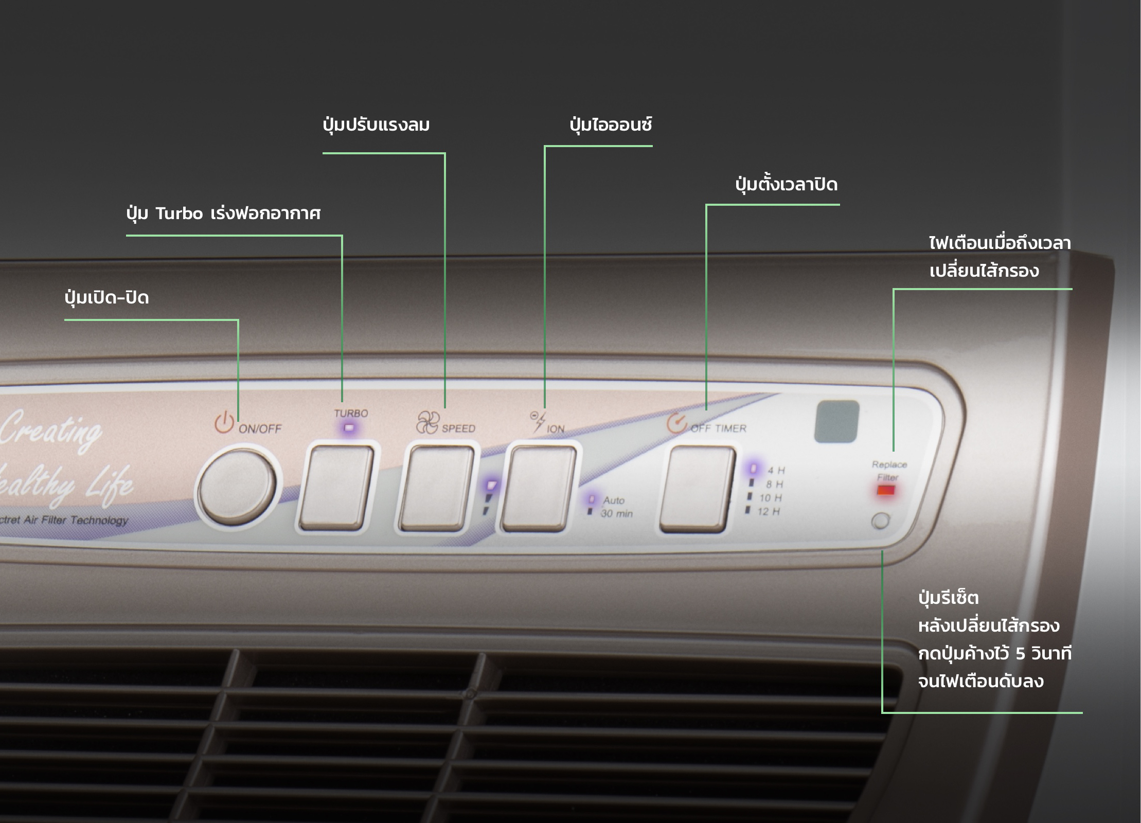 ดักจับฝุ่น ควัน เชื้อรา แบคทีเรีย และสิ่งปนเปื้อนที่อยู่ในอากาศได้ละเอียดถึง 0.01 ไมครอน