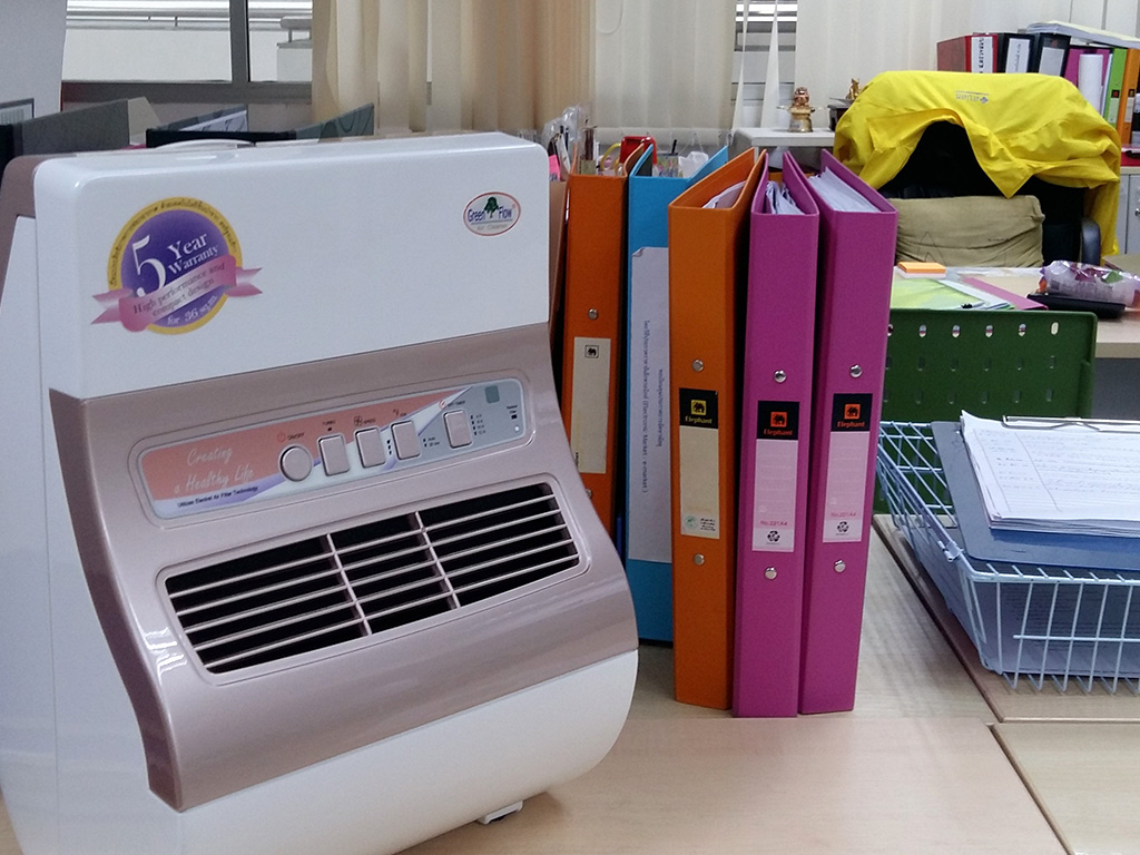 เพื่อไปฆ่าเชื้อโรค และดับกลิ่นไม่พึ่งประสงค์ที่มีขนาดเล็กกว่า 0.01 ไมครอน